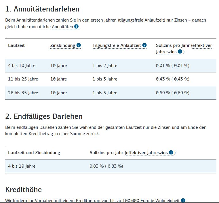 Der Bauturbo nimmt in Schrittgeschwindigkeit Fahrt auf.Jetzt sprechen wir dann langsam mal wieder von einer Förderung.Die KFW hat auch bei den Programmen 297 & 298 nachgezogen und den Zins auf 1,13 % bei einer Laufzeit von bis zu 10 Jahren gesenkt. *) Quelle: KFW-Banken, Stand 23.09.2025Klimafreundlicher Neubau Programm 297/298